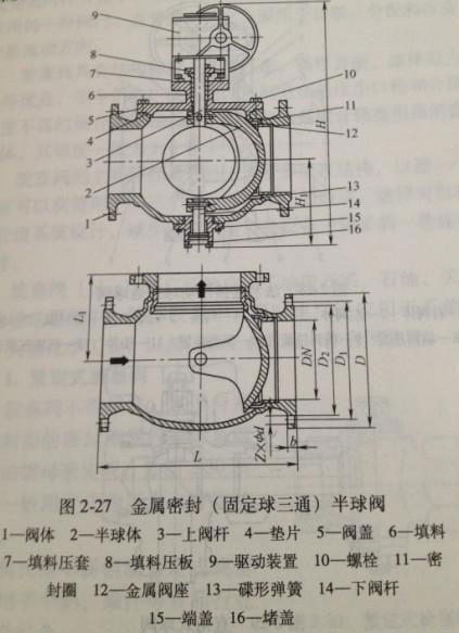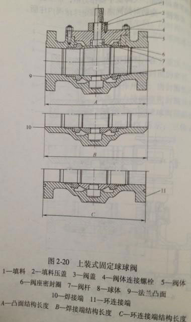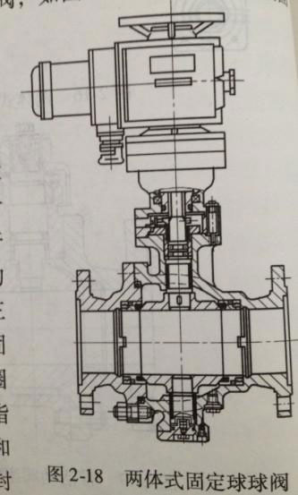 固定球球閥通常設有活動(dòng)閥座密封圈,在介質壓力(lì)的作用下,閥座密封圈能夠產生移位,在閥座密封圈的底部(bù),設在球體上。當有介質壓力(lì)時,介質壓力使閥座密封(fēng)圈緊緊壓在(zài)閥體上。從而保證球閥的密封性能。固定球球閥根據閥體的機構分為(wéi)兩體式固定球球閥,如圖2-18所(suǒ)示;三體式固定球球閥(fá),如(rú)圖2-19所示;上裝式固定球球閥如圖2-20所示;全焊接式固定球球閥,如圖(tú)2-21所示。