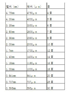 在(zài)礦山機械行業,特(tè)別是磨粉設備裏經(jīng)常出現粉體的成(chéng)品(pǐn)可達到多少目數,比如說我們(men)生產(chǎn)的Y型過濾器高可達到(dào)2000目,其實(shí)很多人腦子裏(lǐ)沒有(yǒu)目數這個概念,不知(zhī)道什麽是目,但是目確(què)實是一個在礦山機械裏(lǐ)麵經常出現的一個詞(cí)匯,那麽(me)在(zài)這(zhè)裏重工(gōng)機械網就告訴大(dà)家,什麽(me)是目(mù)數,它是怎麽一個粒度單(dān)位?目和毫米之間的轉化關係,一目等於多少(shǎo)毫米,或者是一毫米等於(yú)多少目,看了下麵的(de)毫米(mǐ)和目的換算關係您將對目不再茫然:毫米和目的換算關係目數(shù)是(shì)雷蒙磨粉機(jī)操作(zuò)及工業磨粉行業的常用單位名詞,依據中華人民共和國標準GB3520-83,它和毫米和微米的換算關係如下(xià):