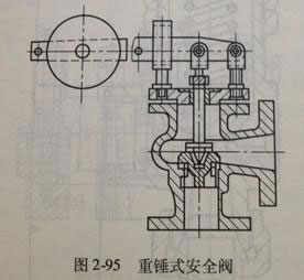 1.重錘式安全閥:用杠杆靜和(hé)重錘來平衡閥(fá)瓣的壓力,如圖2-95所示。這種(zhǒng)機構的(de)優點在(zài)於由閥杆傳來的力基力上是不變的。其缺點是較為笨重,關(guān)閉壓力低。這種機(jī)構隻能在固定設備上,其重錘的(de)重量一(yī)般(bān)不應=超過60kg,以(yǐ)免操(cāo)作困難。