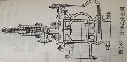 圖2-98為大直徑輸水管(guǎn)路上用(yòng)的脈衝式安全閥。它也是主閥和輔閥組成,輔閥為口徑很小的直接載荷式安(ān)全閥,它與主閥相(xiàng)連接。當係統超壓時,輔閥首(shǒu)先開啟,排放介質,從而驅動或控製主閥瓣開啟,大量(liàng)排放介質。
