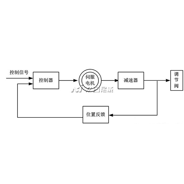 其電動執行器主要是由相互隔離的電氣部分和傳動部分組成,電機作為連接兩個隔離(lí)部分的中間部件。電機按控製要求輸出轉矩,通過多級(jí)正齒輪傳遞到梯形絲杆(gǎn)上,梯形絲杆通過螺紋變換轉矩為推力。因此梯形螺杆(gǎn)通(tōng)過自鎖的輸出軸將直線行程傳遞到閥杆。執行機構輸(shū)出軸帶有一個防止傳動的止轉環,輸(shū)出軸的徑向鎖定裝置也可以做動位(wèi)置指示器。輸出(chū)軸止動環上連有一個旗杆,旗杆隨輸出軸(zhóu)同步運行,通過與旗杆連(lián)接的(de)齒條板將輸出軸位移轉換成電信(xìn)號,提供給智能控(kòng)製板作為比較(jiào)信號和閥位反饋輸出(chū)。同時執行機構的行程也可由齒條板上的兩個主限位開關開限製,並由兩機械限位保(bǎo)護。