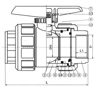 焊接塑(sù)料球閥零件材質表: