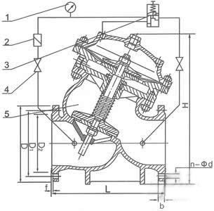 | AX742X安全泄壓閥 安(ān)全(quán)持壓閥部件(jiàn)列表: 1、壓力表2、過濾器3、控製導閥4、流量調節閥5、主閥 |