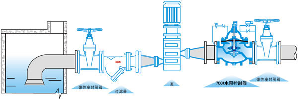 700X多功能水泵控製閥由主閥、電磁導閥、針閥、球閥、單向閥、行程(chéng)開關、微形過濾器和壓力表組成水力控製接(jiē)管係(xì)統。水泵需停止工作時,先由進口壓使主閥關閉90%後,水(shuǐ)泵停止運轉。剩餘10%由回水關(guān)閉。可防止水錘現象發生。