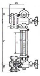 儀(yí)表上下(xià)閥都裝有 PN1.6MPa,DN20 的法蘭。通過焊接在容器上的法蘭,與容器組(zǔ)成連通器(qì),透過(guò)玻璃(lí)管就可直接顯示容器內介質液位的高度。儀(yí)表兩端(duān)均裝有針形閥(fá),針形閥(fá)內裝有鋼球,當玻璃管因事故而(ér)破裂時,鋼球在容器壓力作用下(xià)自動關閉針形閥通道,以防止容器(qì)內介質外流。